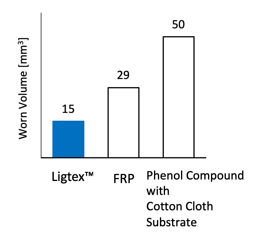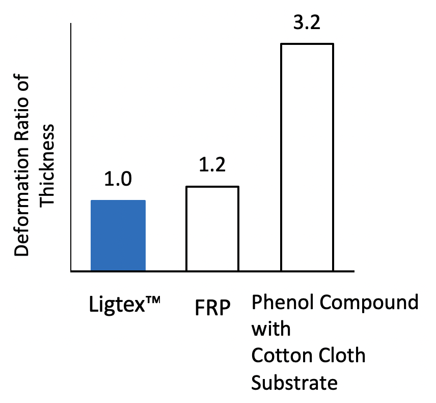 The bonding strength between “substrate and resin” in Ligtex™ material is superior compared to that of “resin and fiber” in phenol compound or “resin and glass fiber” in conventional FRP. Familiarity of “substrate and resin“ of Ligtex™ brings excellent bonding strength.
